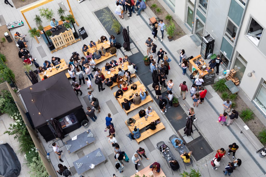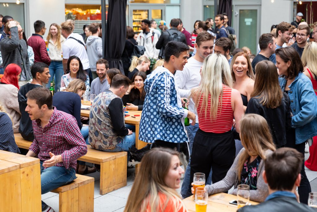 The Courtyard of the Silicon Allee campus is our ground floor outdoor terrace. Our custom handmade wooden beer picnic tables and huge umbrellas can be arranged to accommodate a number of different formats and events. If you want a venue with a real summer vibe but cosy atmosphere, this is it.