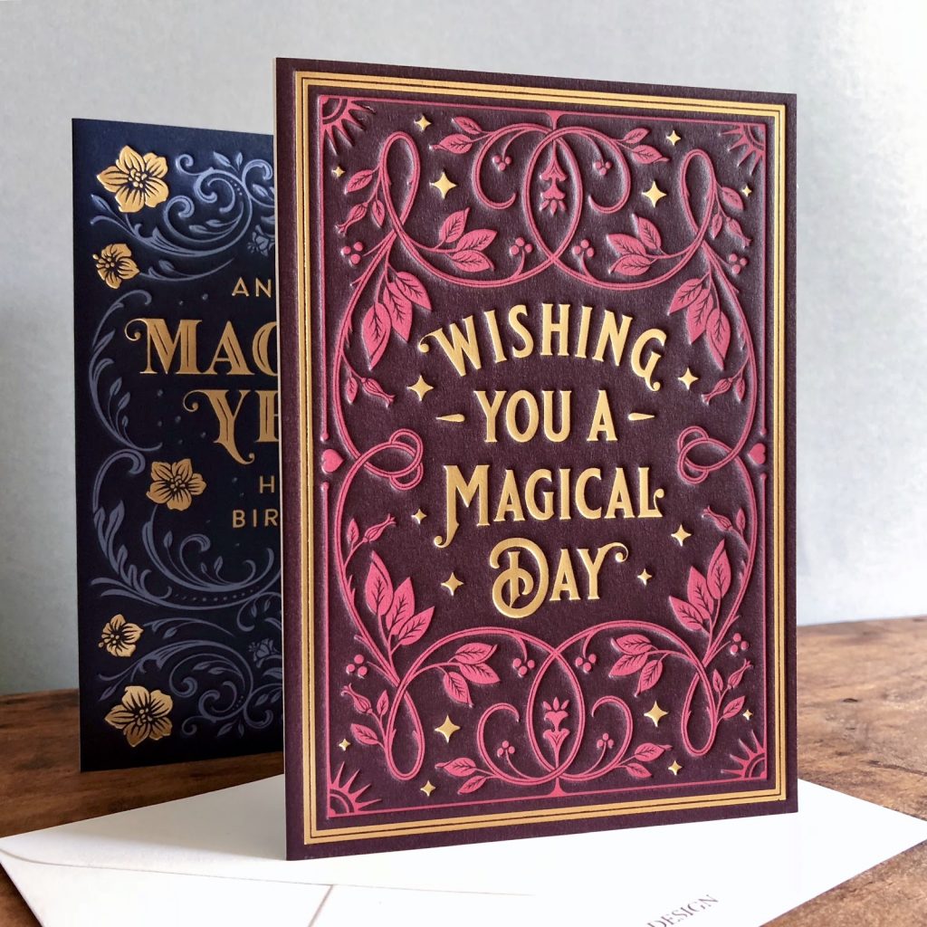 Artistically designed greeting cards created with Heritage Type