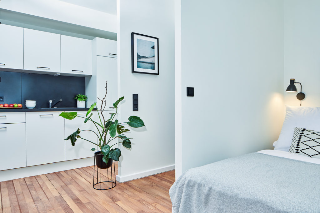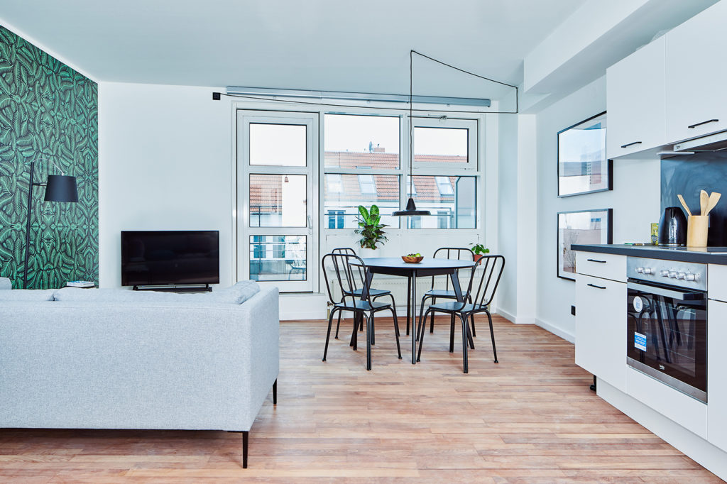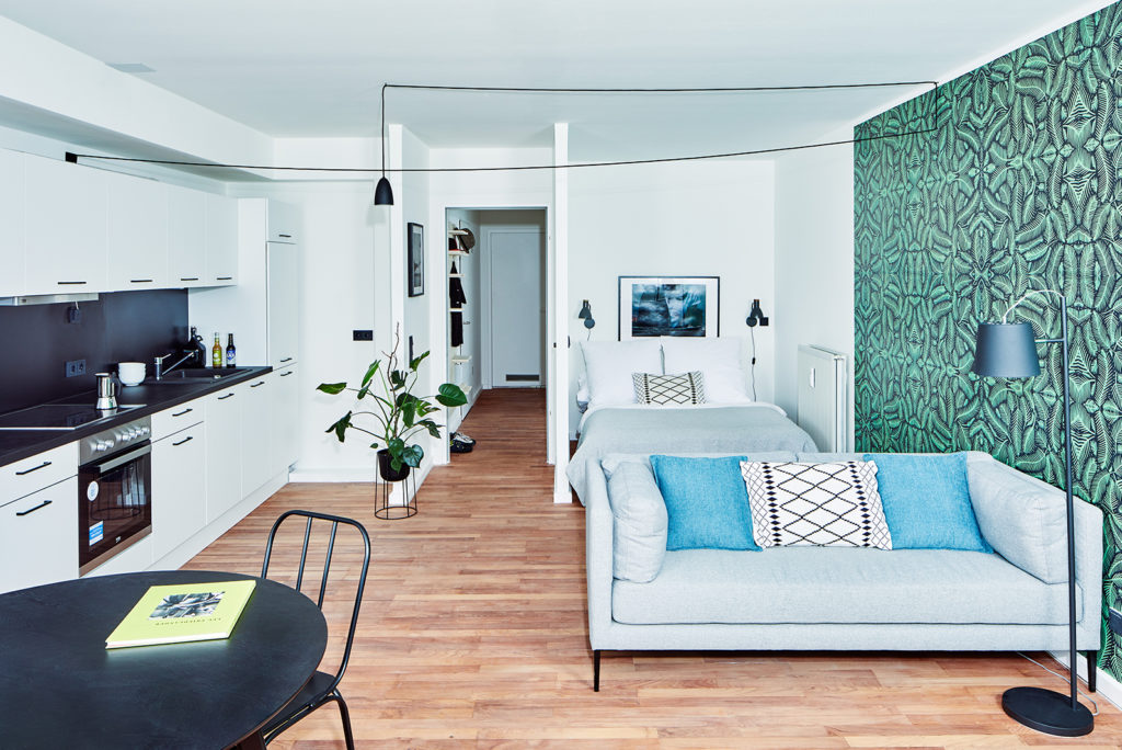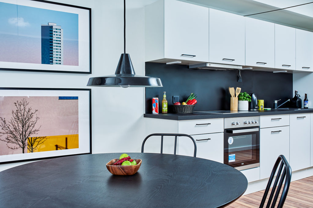 Every apartment features a curated collection of modern furniture and home accessories from brands like MADE, Maisons du Monde and more. Artwork is stylishly-sourced from local Berlin startups like EyeEm and local street artist Marok’s personal collection.